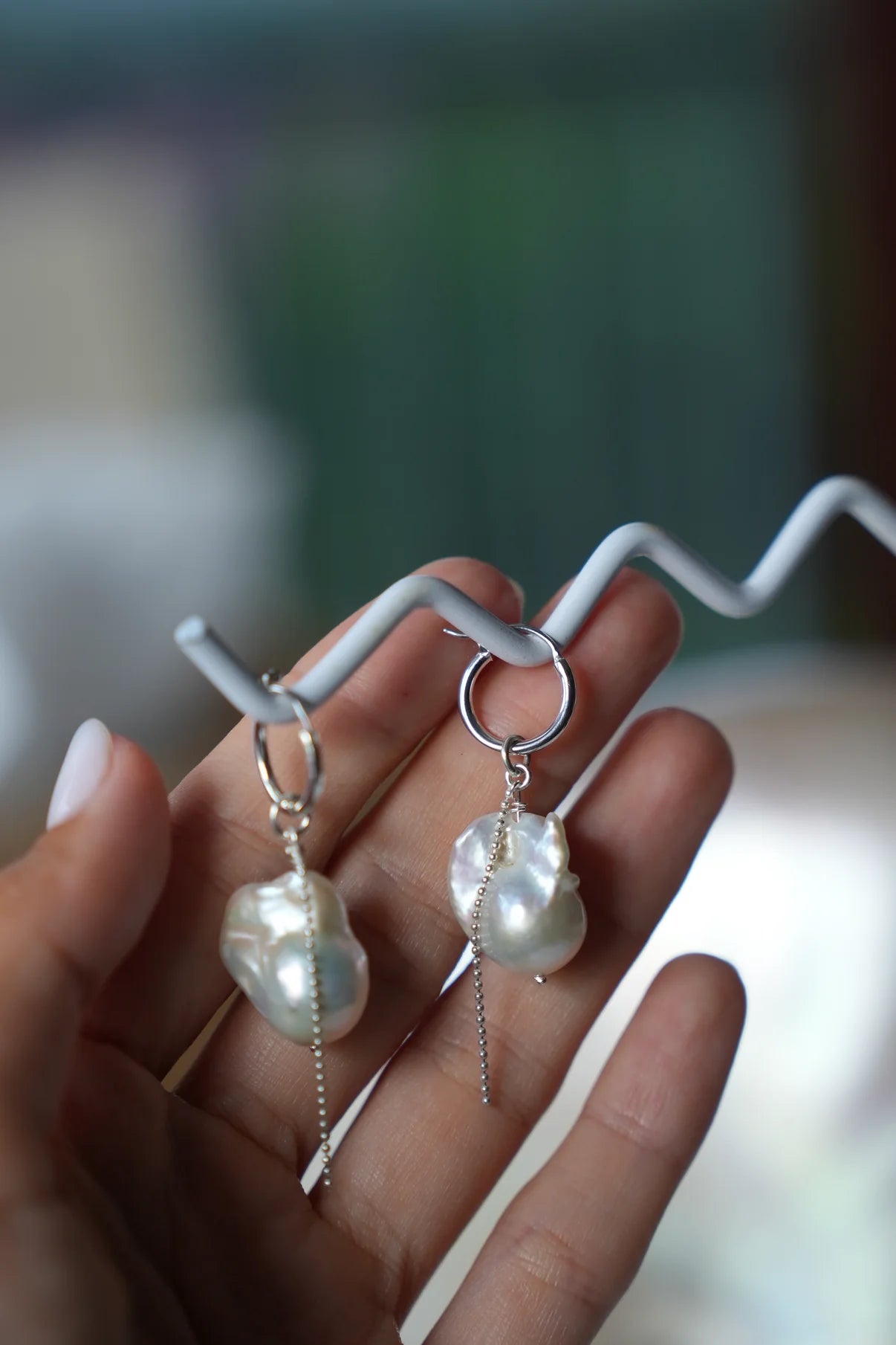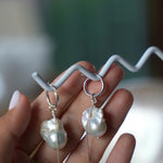 Ein Paar Ohrringe, das sofort auffällt – ohne laut zu wirken. Die Mermaid Ohrringe kombiniert große, natürliche Perlen mit einem schlichten, runden Ohrring aus 925er Silber. Das feine Silberketten-Detail bringt eine leichte Bewegung hinein, wie ein sanfter Hauch Meeresbrise.