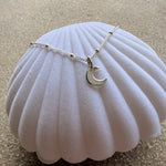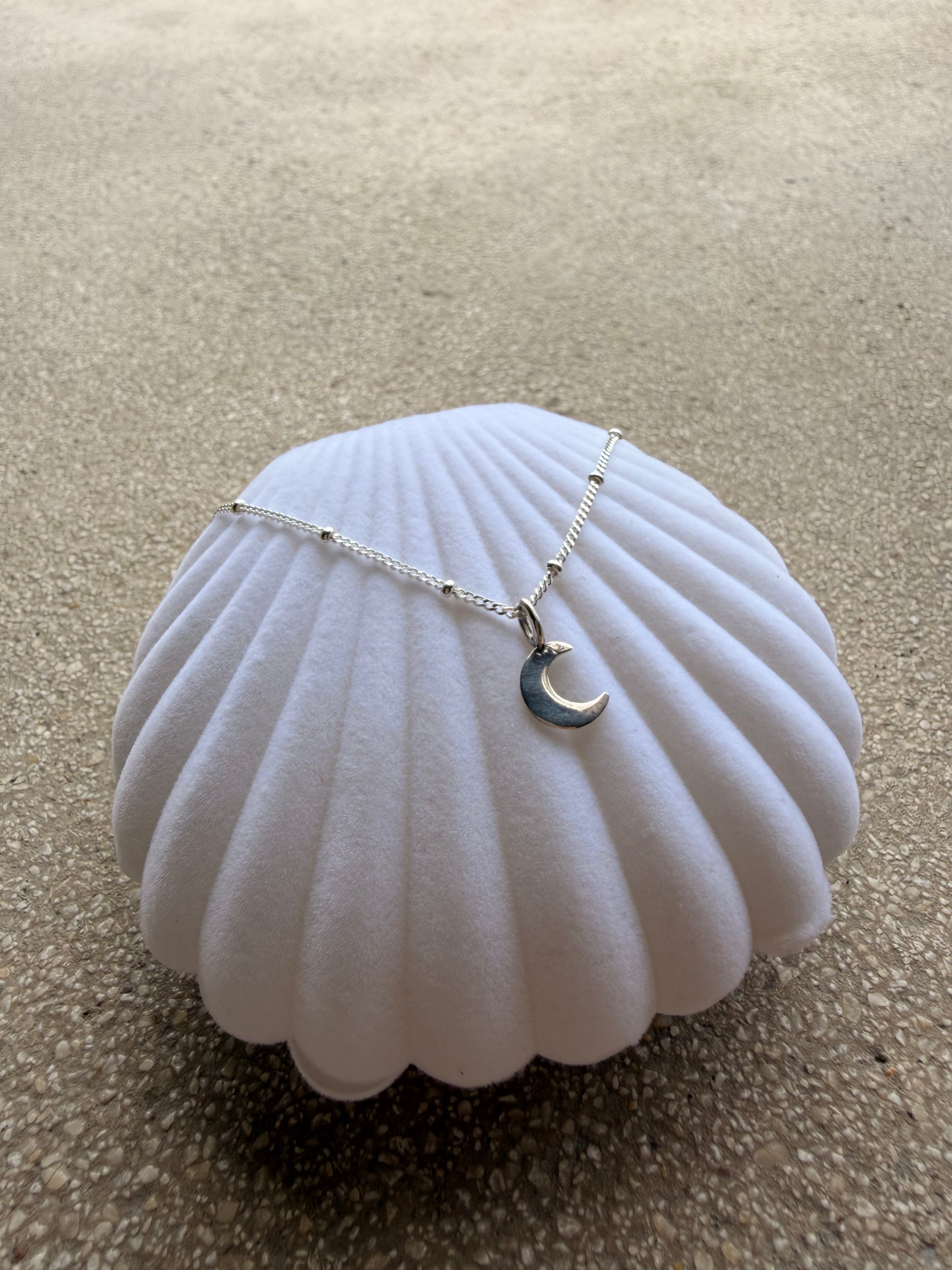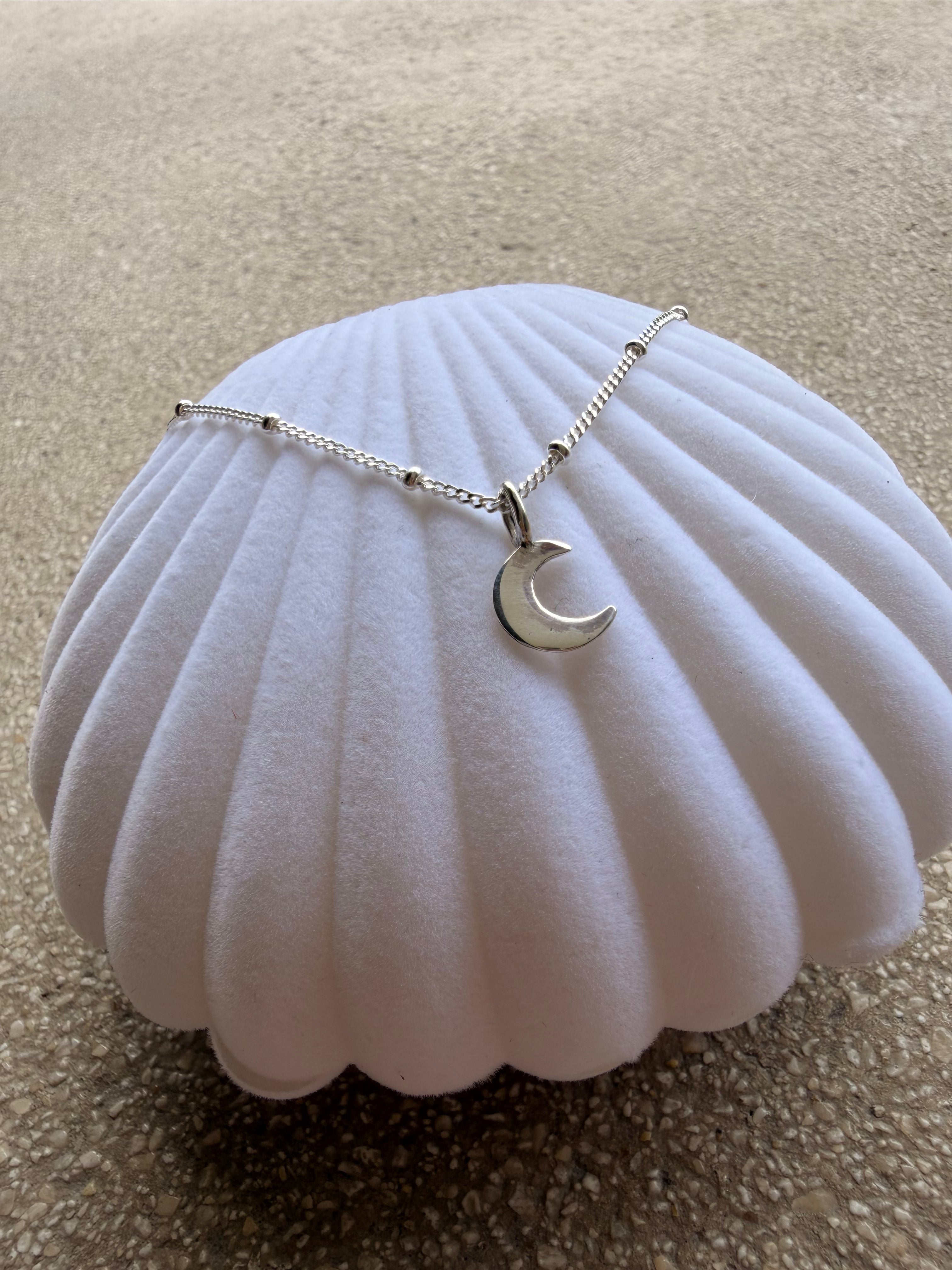 Sanft wie das silberne Licht des Mondes über der Nordsee: Unsere Mond-Kette aus 925er Sterling Silber fängt die stille Magie der Küste ein.